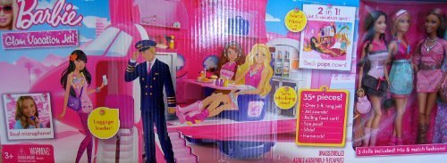 Santa brought the Jet to our 6 year old granddaughter and she has not stopped playing with it. Her barbie's have been to Japan (one even lives in Tokyo) and all over the world. Quite fascinating to watch the play and interacting with her 4 year old cousin.Most of the consumer Reviews tell that the "Barbie Glam Vacation Jet! - 2 in 1 Jet & Vacation Spot 35+ Piece Playset w Pl" are high quality item. You can read each testimony from consumers to find out cons and pros from Barbie Glam Vacation Jet! - 2 in 1 Jet & Vacation Spot 35+ Piece Playset w Pl ...